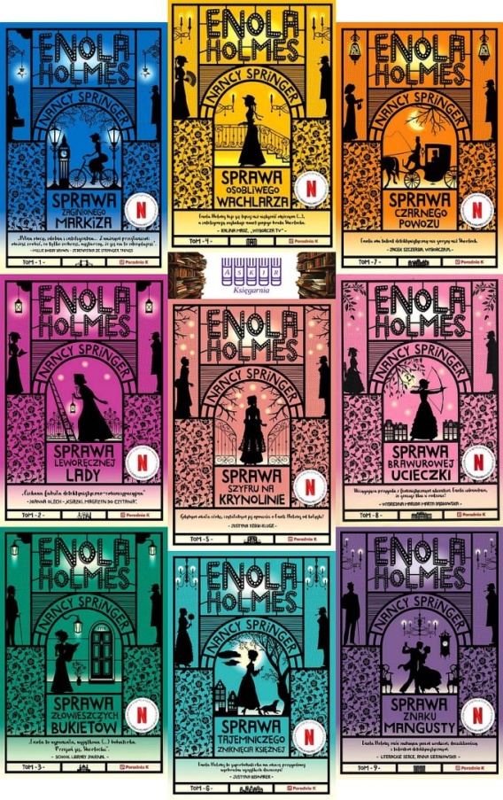 Nancy Springer opisała przygody młodszej siostry Sherlocka Holmesa, osadzając fabułę swoich książek w uniwersum stworzonym przez Arthura Conan Doyle'a. Czytelnik ogląda Londyn oczami dziewczyny, mającej odwagę przeciwstawić się wiktoriańskim konwenansom.